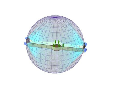 可根據(jù)客戶要求定制各種規(guī)格尺寸的球幕、半球幕、飛行影院球幕等。